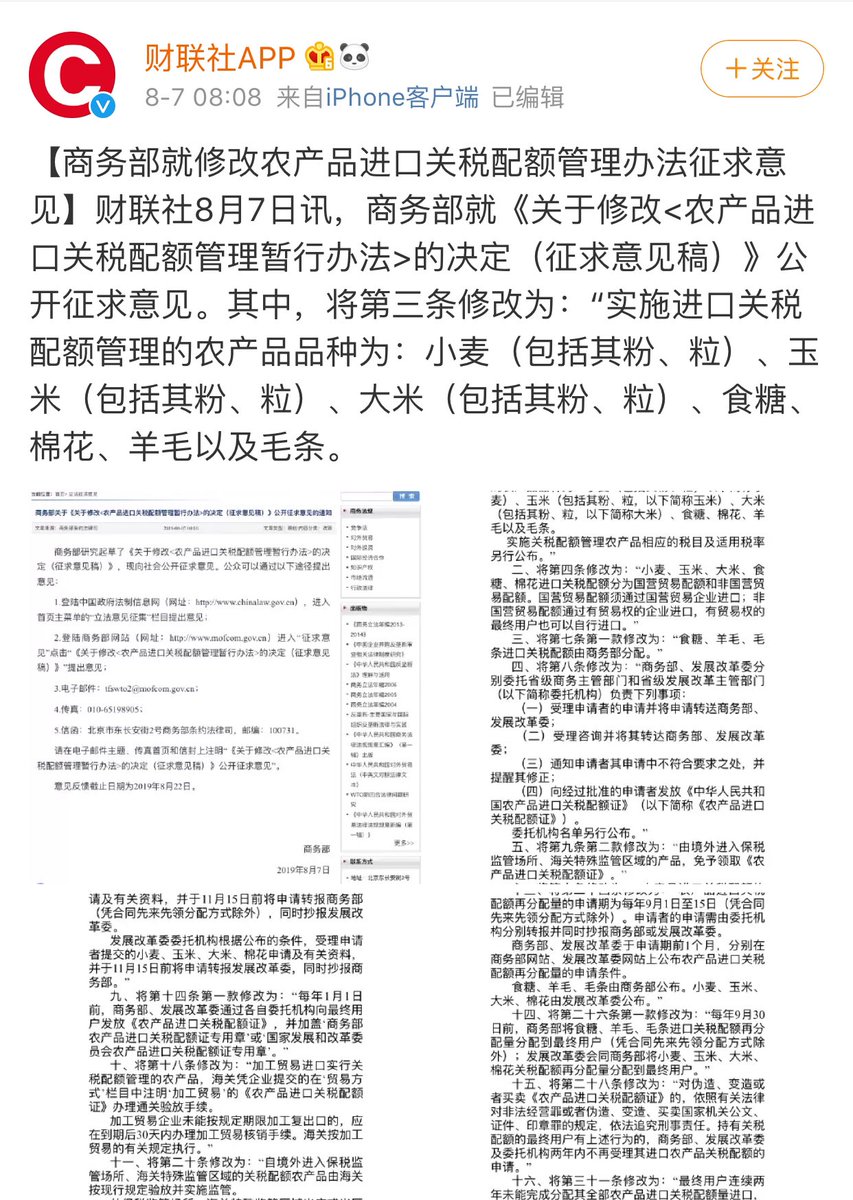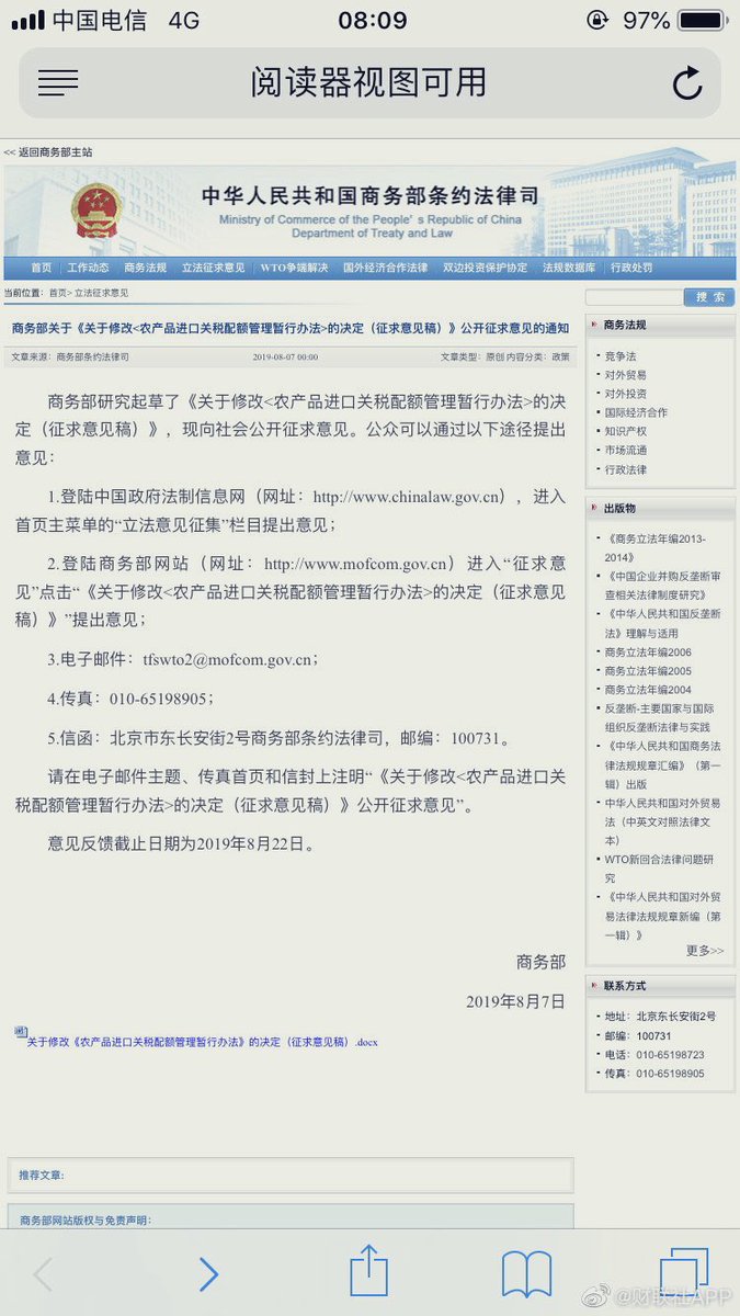 - 刚刚!中共商务部修改了《农产品进口关税配额管理暂行办法》!中共正试探性向美国投降,大家可以看一下三四条的修改,对比原来版本!已经完全删除了豆油、菜籽油、棕榈油的进口配额!美国将大豆制成豆油就可以不受限制的对华出口!不过,以后中共不进口大豆,但不限量进口豆油。目测国内榨油行业药丸…